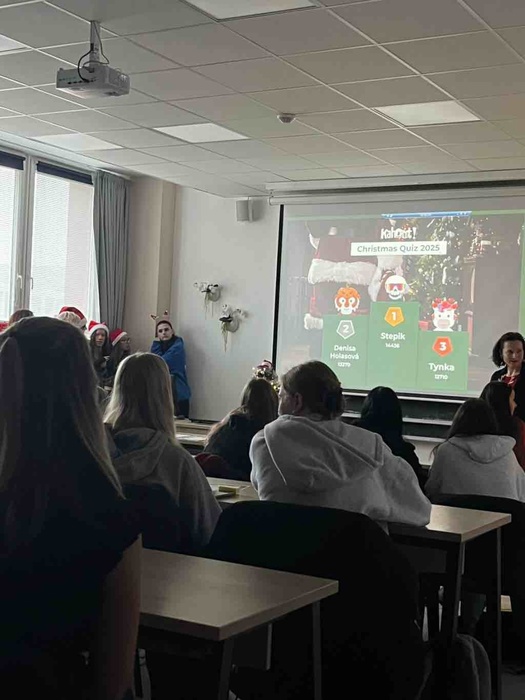 Program odstartoval společnou prezencí a následným individuálním testem znalostí prostřednictvím aplikace Kahoot. Otázky byly zaměřeny na vánoční reálie a slovní zásobu. Naše žákyně předvedly skvělý postřeh a jedna z nich v konkurenci desítek dětí vybojovala fantastické 2. místo.